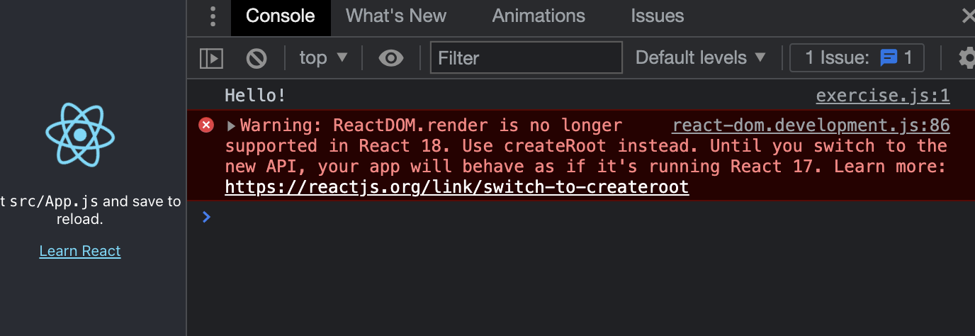 1. ReacDOM.render는 더이상 React 버전18을 지원하지 않음을 알게 되었다