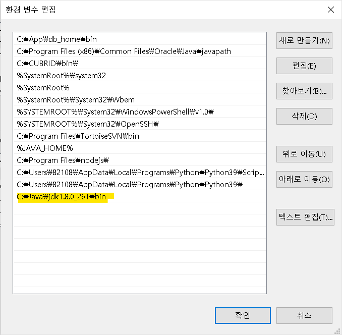 시스템설정 > 시스템 환경변수에 있는 JAVA_HOME이라는 경로에 추가수정 해주었다.
