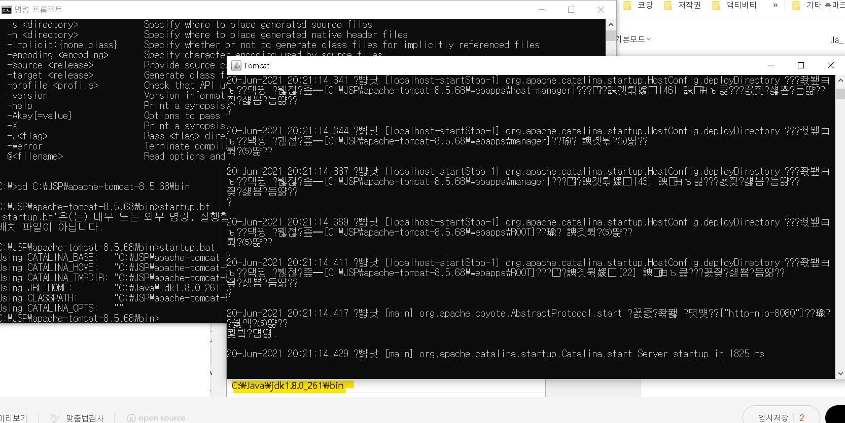 startup.bat 을 입력하면 apache tomcat이 실행됨을 아래와 같이 확인가능하다