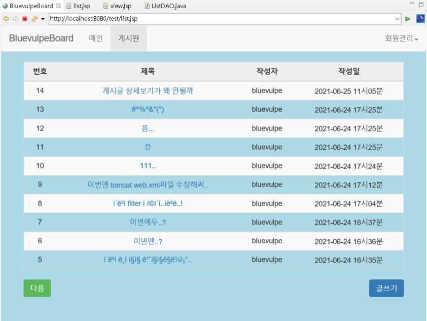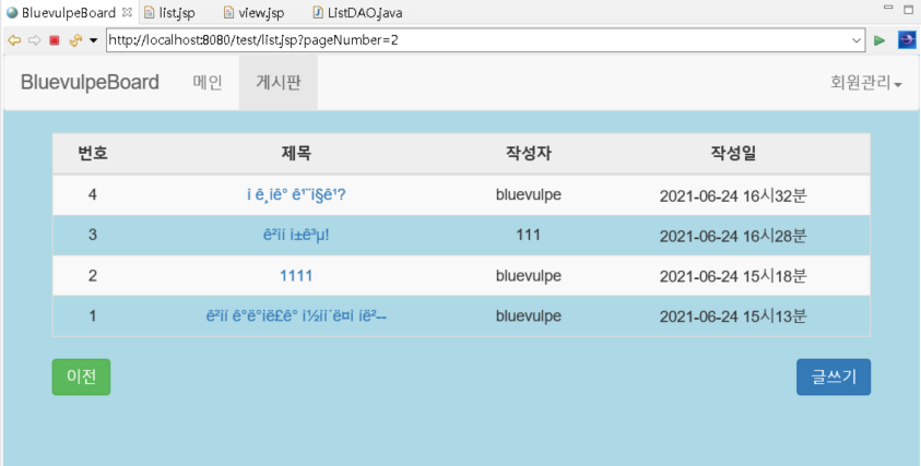 인코딩이 안깨지는 게시판에 글을 등록하여 확인해보자 :)