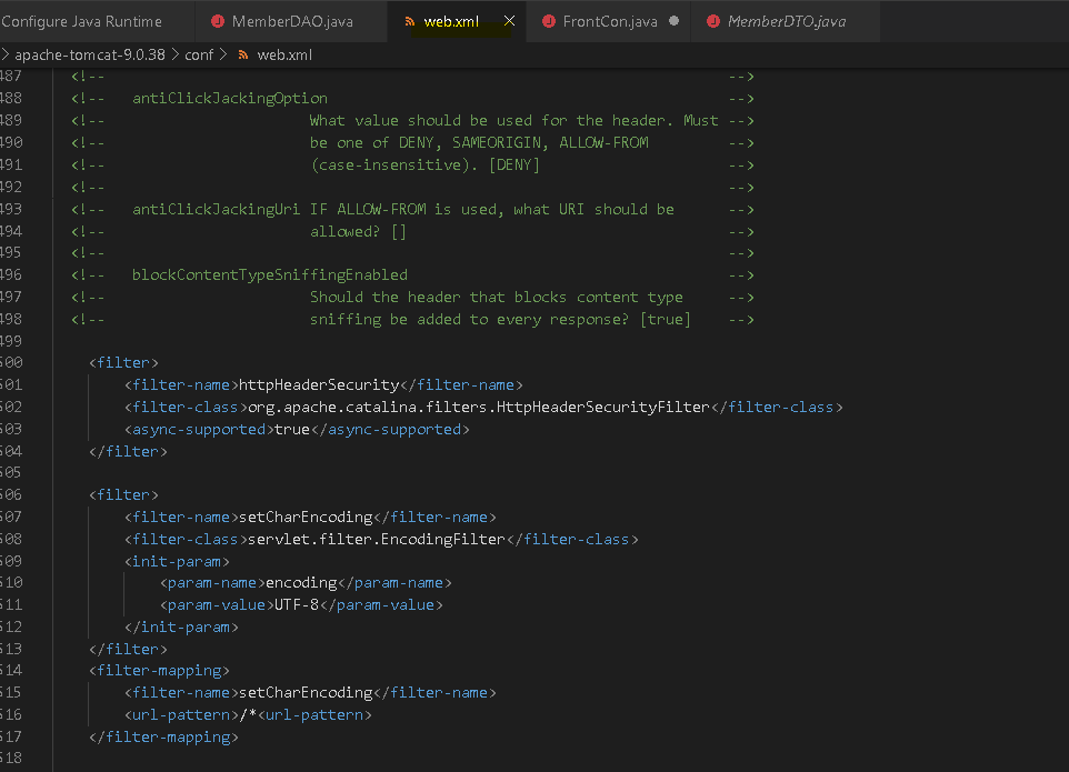# filter class 생성 및 apache tomcate web.xml 파일수정