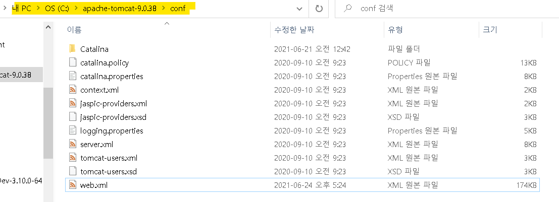 그다음 apache tomcat에 있는 xml파일을 아래와 같이 수정한다.