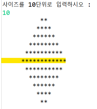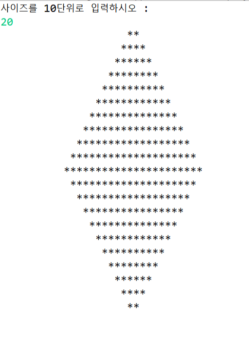 System.out.println("사이즈를 10단위로 입력하시오 : ");