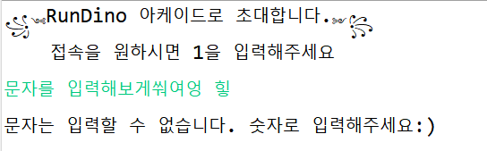 System.out.println("꧁༺RunDino 아케이드로 초대합니다.༻꧂");
